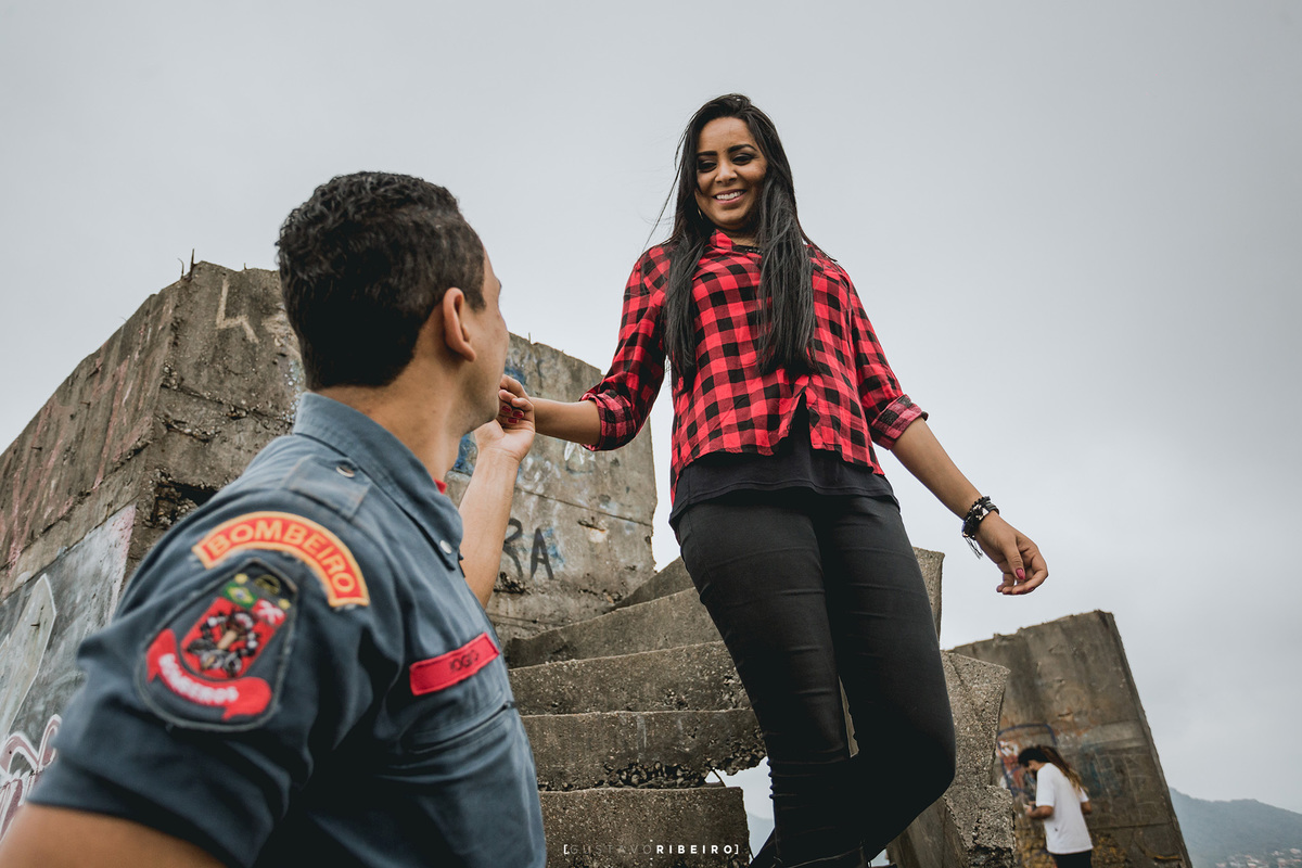 Um ensaio de tirar o fôlego, o noivo bombeiro civil e sua noiva aventureira aceitaram minha ideia de ir totalmente contrario ao normal, subimos um prédio de 18 andares com pouca segurança , indo contra todas as regras para ter imagens belíssimas, um momento que traz realmente de volta toda essência da vida de um bombeiro o "correr riscos" porém dessa vez foi para marcar o ensaio de casamento, um dia único, cansativo porém com grande alegria, acompanhe as imagens deste dia abaixo.